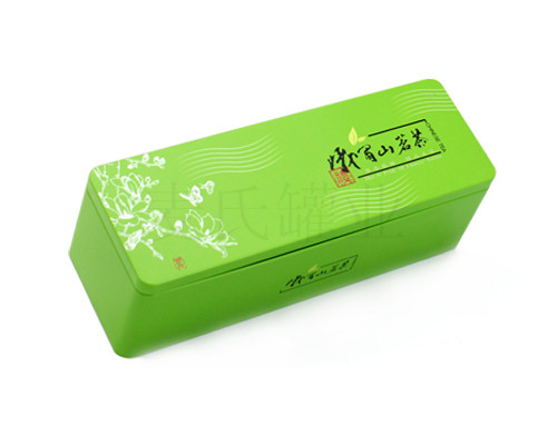 這款長方形綠茶鐵盒采用0.23mm鍍錫馬口鐵制作,客戶可根據自身需求,選擇0.23-0.28mm的馬口鐵/磨砂鐵制作,而選擇磨砂鐵制作鐵盒可使得材質表面有強烈的沙礫效果,在觸感上會變得更加有感覺。