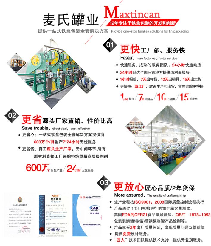 保健酒鐵盒加工廠——清遠市麥氏罐業(yè)多年來以的產(chǎn)品、誠信的服務(wù)深受廣大商家客戶的青睞。提供的產(chǎn)品質(zhì)量上乘、價格合理,鐵盒產(chǎn)品多年通過ISO、SGS等機構(gòu)測試,為您提供的鐵盒包裝產(chǎn)品。