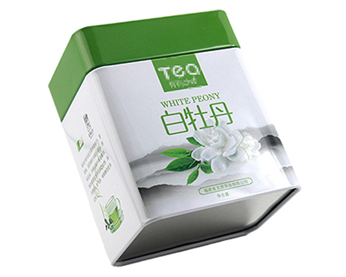 此款方形白牡丹茶葉鐵罐的尺寸為105*75*123mm,為了順應(yīng)多樣化的市場包裝需求,這款茶葉馬口鐵罐可做成心形、正方形、橢圓形、車形、書本形等異形造型。