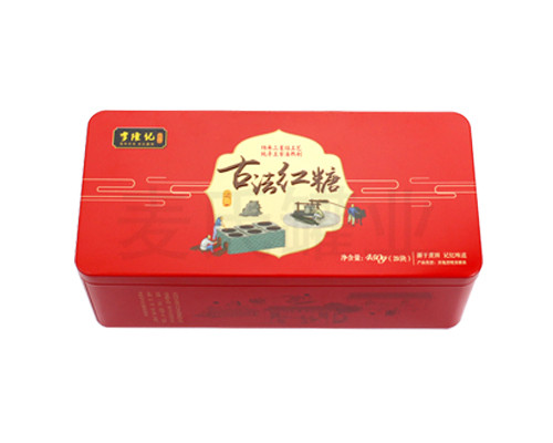 方形紅糖馬口鐵盒,古方片糖包裝盒材質(zhì):0.23mm鍍錫馬口鐵;規(guī)格:220*100*70mm,是保健食品鐵盒制造商-麥?zhǔn)瞎迾I(yè)精心打造而成,印刷版面精美創(chuàng)意,造型設(shè)計新穎。古方片糖包裝盒定制熱線:186-7632-2818