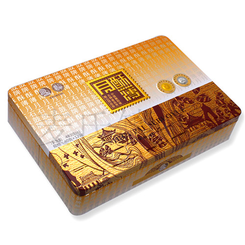 薄酥月餅馬口鐵罐材質(zhì):一級(鍍錫)馬口鐵;可選擇磨砂鐵、銀光鐵等材質(zhì)進行制作,鐵料厚度0.23-0.30mm可選擇;