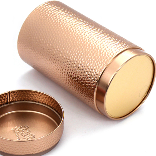 此款馬口鐵圓罐茶葉鐵罐包裝為單面CMYK四色印刷處理,外過水性亮光油,內涂金油,過油目的不僅能提高鐵盒整體效果,具有強烈的金屬質感外,還對鐵盒印刷面形成一層致密的保護膜,對鐵罐刮花、防銹起到一定的防護作用。除了過光油、透明油外,客戶還可選擇過皺紋油、珠光油、爆炸油等。