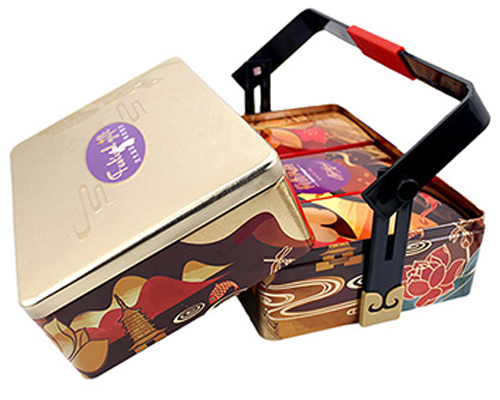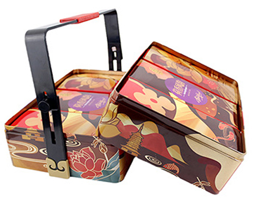 麥?zhǔn)瞎迾I(yè)生產(chǎn)的精美方形食品馬口鐵盒_中秋送禮雙層手提月餅鐵盒包裝,產(chǎn)品已遠(yuǎn)銷國(guó)內(nèi)外二十多個(gè)國(guó)家與地區(qū),食品鐵盒包裝生產(chǎn)廠家咨詢熱線:18676322818。