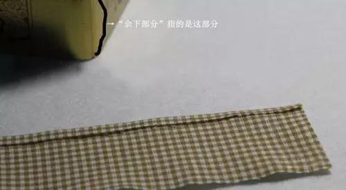 2、盒邊布條的制作:尺寸為盒子蓋上蓋子后,剩余部分長(zhǎng)度再加7mm,然后折進(jìn)7mm,用熨斗熨平備用。