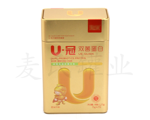 很多平蓋益生菌固體飲料鐵盒上都有臺(tái)階,臺(tái)階的功能在于方便同一尺寸的鐵盒相互重疊,這非常方便的商場(chǎng)貨架上堆放產(chǎn)品并且有效利用貨架空間。這款益生菌固體飲料鐵盒,采用國(guó)產(chǎn)一級(jí)馬口鐵為基材,專(zhuān)色印刷工藝。想了解更多嬰幼兒保健品鐵盒包裝,請(qǐng)致電:186-7632-2818,清遠(yuǎn)麥?zhǔn)瞎迾I(yè)恭候您的到來(lái)!