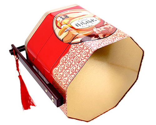 此款祥瑞福禮三層六邊形月餅盒的尺寸為250*250*290mm,為了順應(yīng)多樣化的市場(chǎng)包裝需求,這款糖果馬口鐵盒可做成心形、正方形、橢圓形、車形、書本形等異形造型。