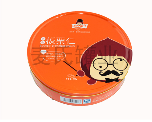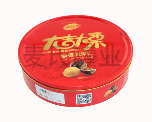 此款圓形板栗鐵皮盒子的印刷處理為單面四色+一專色,外表面過光油,內(nèi)壁上食品級金油。同時(shí)您還可以選擇雙面或單面進(jìn)行四色或?qū)I∷?,產(chǎn)品外部可定制涂布啞油,爆炸油,真珠油等。甚至可根據(jù)自身產(chǎn)品的特點(diǎn)要求選擇植絨、PVC、PET等不同材質(zhì)的內(nèi)托配件。